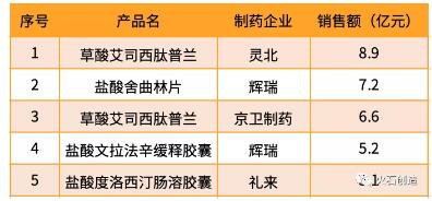 表2 2018年我国公立医疗机构终端抗抑郁药TOP5