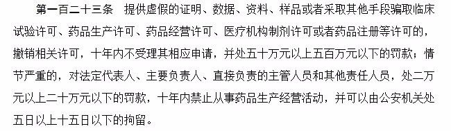 第一、许可准入处罚:按照《药品管理法》第一百二十三条给予处罚,将其相关责任人纳入黑名单并通报有关部门进行联合信用惩戒。
