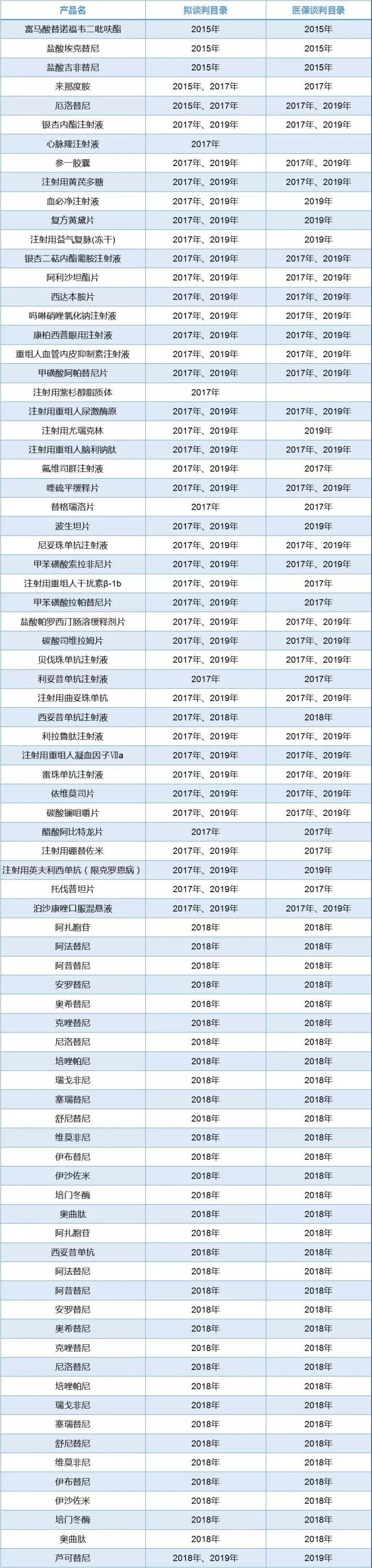 2019年新纳入拟谈判目录的产品在谈判前期并没有像2017年和2018年公布完整的名单,谈判后也没有公开信息公布,或许是为了保护不接受医保降价的企业,让企业再回锅的压力不要那么大。