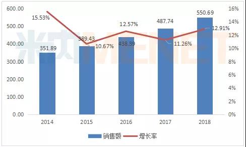 与此同时,“两病”用药市场也在持续增长中。米内网数据显示,2018年中国公立医疗机构终端抗高血压用药的销售额为550.69亿元,同比增长12.91%;2018年中国公立医疗机构终端糖尿病用药销售额为512.28亿元,同比增长12.79%。