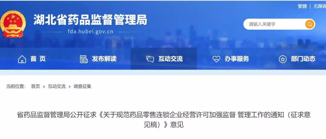 近日,湖北省药监局发布了《关于规范药品零售连锁企业经营许可加强监督管理工作的通知(征求意见稿)》(以下简称《通知》)。