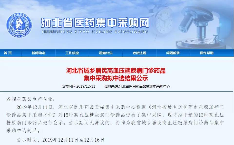 其实早在河北11月底公布《河北省城乡居民高血压糖尿病门诊药品集中采购文件》,给出采购品种规格目录、约定采购量以及最高限价时,就有业内分析推测出与如今相似价格走向。根据文件给出的政策,采购周期为1年,中标品种将给予城乡居民“两病”门诊药品中选企业该品种通用名下河北省全部市场份额,对城乡居民“两病”医保报销范围内门诊药品实行封闭管理。