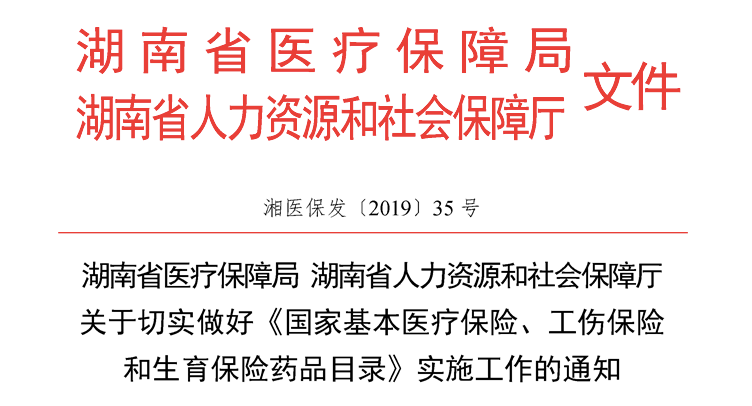 12月13日,湖南省医保局与人社厅联合下发《关于切实做好<国家基本医疗保险、工伤保险和生育保险药品目录>实施工作的通知》。