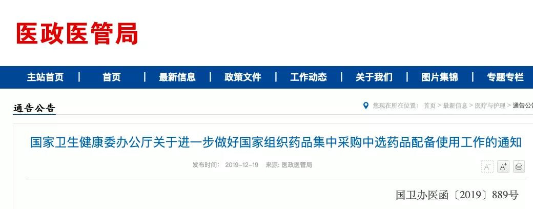 就在19日,国家卫健委发布《关于进一步做好国家组织药品集中采购中选药品配备使用工作的通知》,要求各省级卫生健康行政部门要按照本地区上报的约定采购量,确保按期完成合同用量。今天的发文,可以看出对带量采购药品使用的保障。