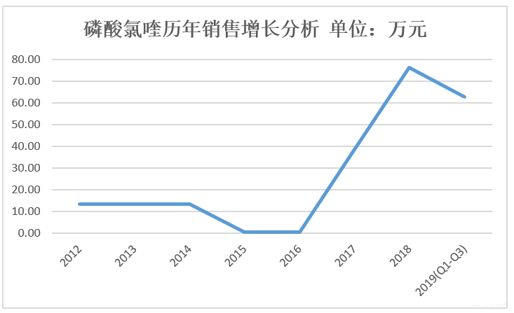 值得注意的是,由于防治得当,疟疾在我国逐渐消失,七八十年代曾大量生产的磷酸氯喹其市场逐渐开始萎缩,白云山光华制药等药企也逐步降低产量直至九十年代末彻底停产。